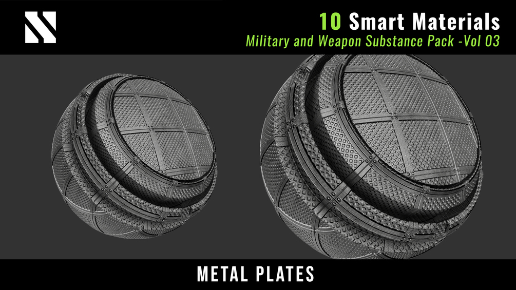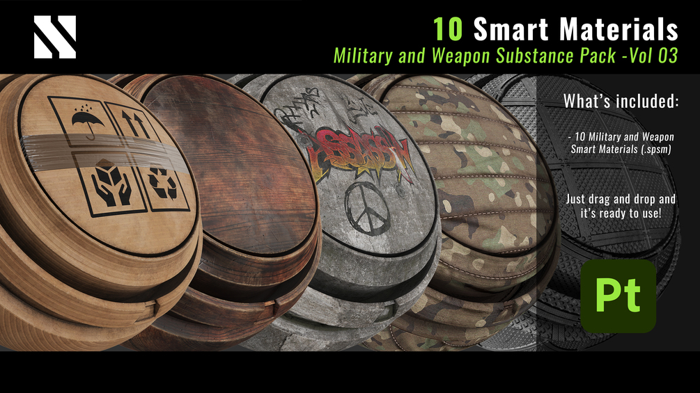 A set of 10 Military and Weapon for Substance Painter for texturing all kinds of weapons and military based materials.
